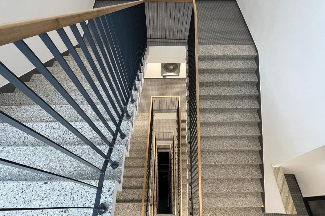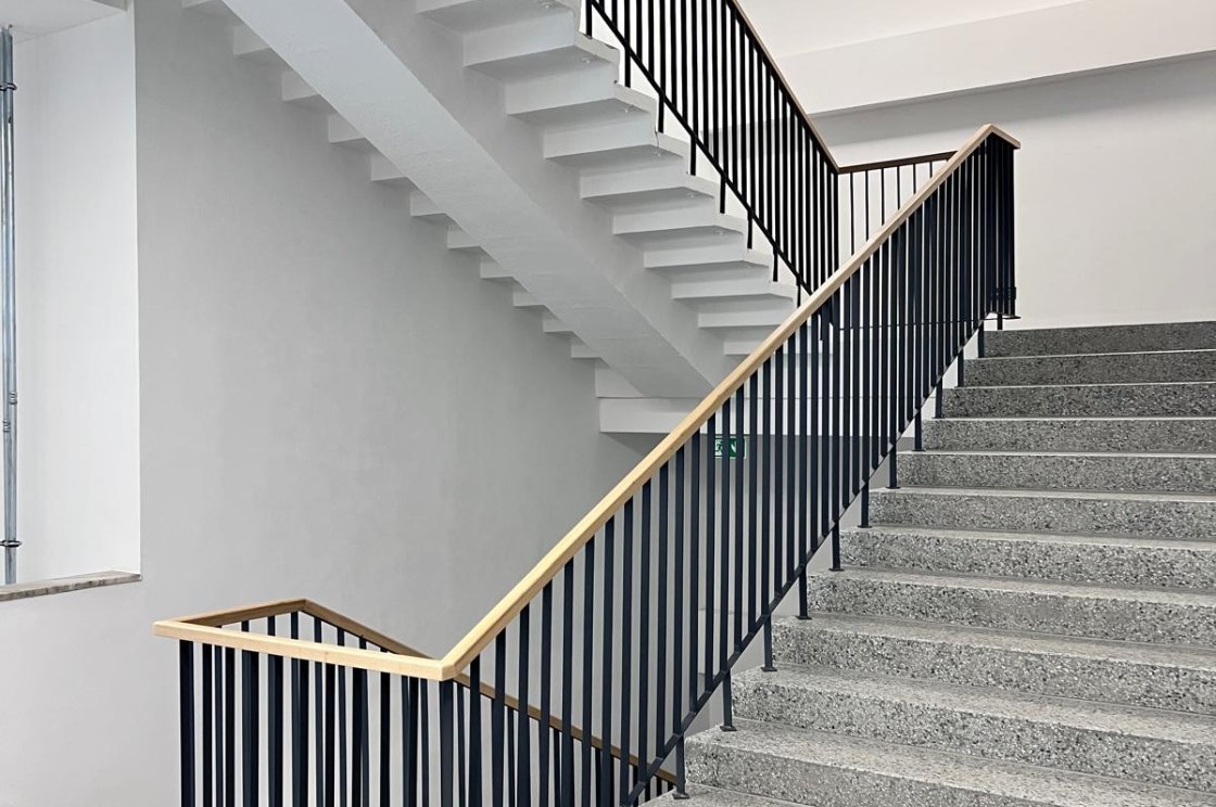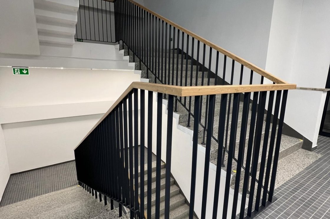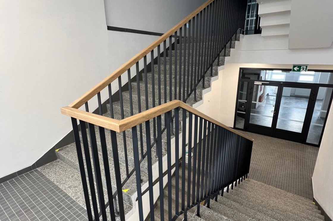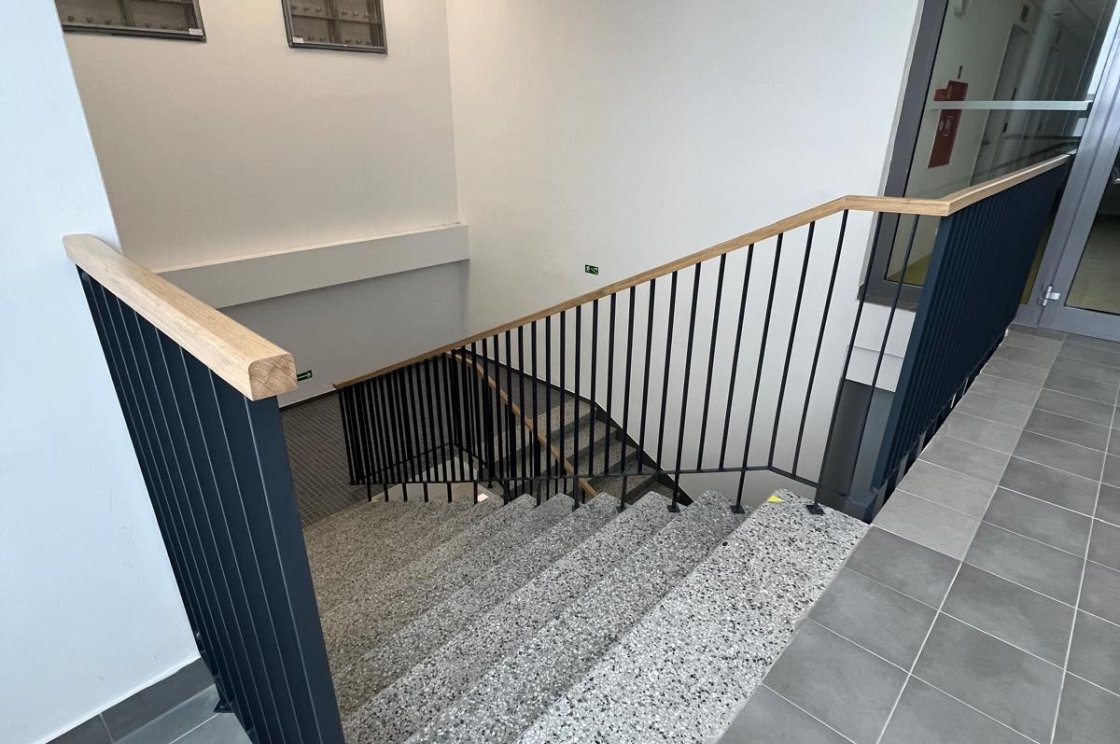 Výroba z pásoviny, jako v případě tohoto zábrádlí, neubírá prostoru vzdušnost a zároveň se vždy stává pevnou oporou.